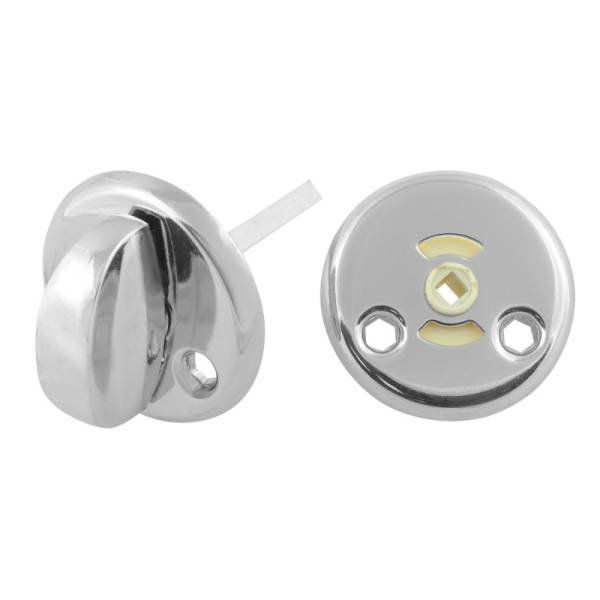 Металлическая поворотная кнопка окрашенная в хром, также называется сантехнической поворотной ручкой, устанавливается вместе с защелкой на легкие межкомнатные двери, двери санузлов.