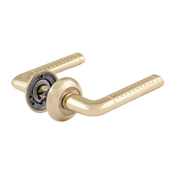 Ручка дверная Нора-М 101А AL золото на круглой розетке для установки на входные или межкомнатные двери.