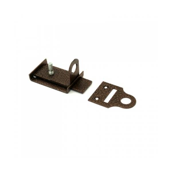 Засов накладной Делга универсальный с проушинами под навесной замок с плоским ригелем, порошковое покрытие, цвет медно-коричневый, изготовлен из высокопрочной стали.