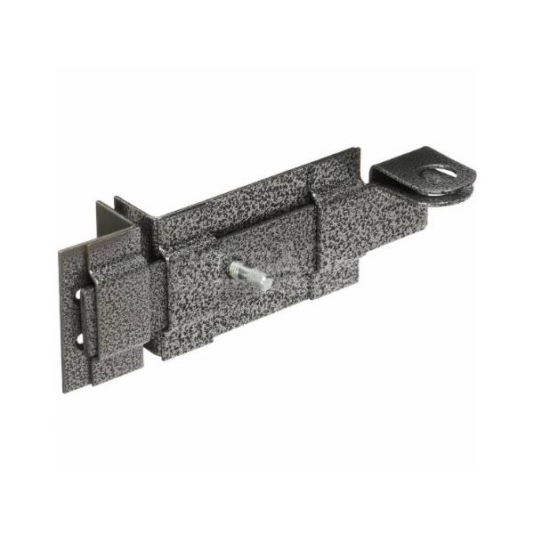 Засов накладной Делга универсальный с проушинами под навесной замок с плоским ригелем, порошковое покрытие, цвет серебро.