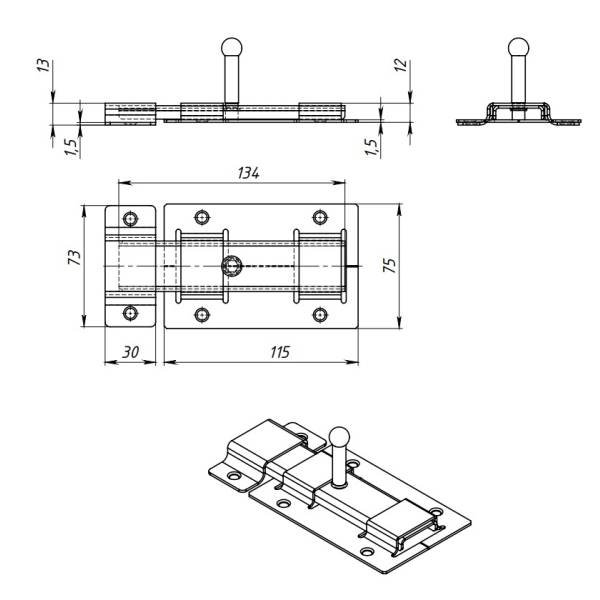 Длина засова 135 мм;