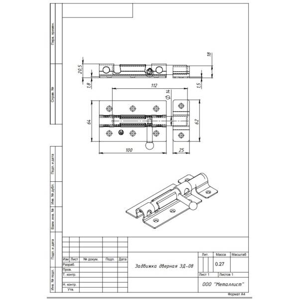 Задвижка дверная Металлист ЗД-08 с круглым ригелем выполняет функцию дверной щеколды или шпингалета, предназначена для фиксации двери в закрытом положении