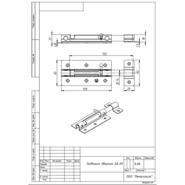 Задвижка дверная Металлист ЗД-09 с круглым ригелем выполняет функцию дверной щеколды или шпингалета, предназначена для фиксации двери в закрытом положении