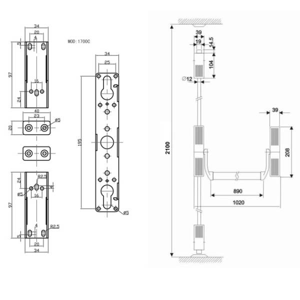 Ручка-штанга нажимная с тягами Система АнтиПаника PB-1700C-Panic-BL/Red Apecs