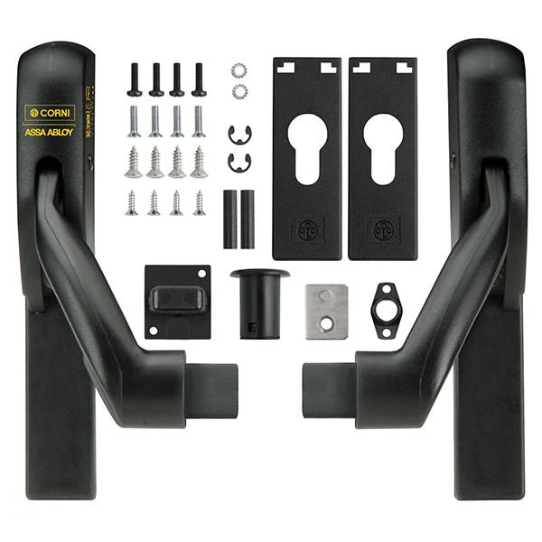 Механизм анти-паник CORNI EUROSMART подходит для деревянных и металлических противопожарных дверей.