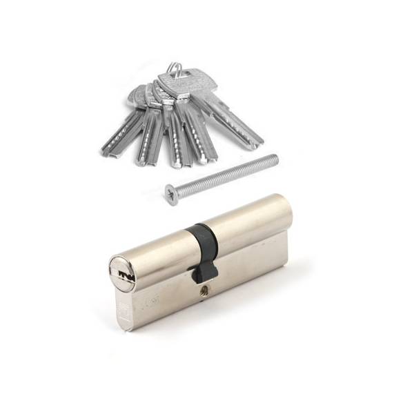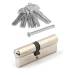 Два опорных пина с проточкой для защиты от вскрытия отмычками. Закаленный штифт в сердечнике и штифт в торце корпуса цилиндра для защиты от высверливания.