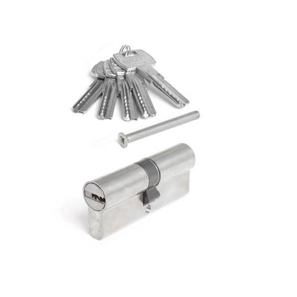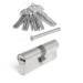 Технические характеристикиi: цилиндровый механизм секретности; профильный ключ; Количество ключей 5 шт; Механизм постоянного ключа; Размер цилиндра 45/55 мм; Материал цилиндра латунь; Покрытие цилиндра гальваническое; Цвет покрытия никель; Секретность 46600; Количество пинов 6; Материал сердечника латунь; Класс защиты 3.