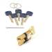 Технические характеристики: Размер цилиндра 90 мм, со смещением 40х50 мм, модификация ключ-вертушка, вертушка со стороны 50 мм, материал цилиндра латунь, покрытие гальваническое, цвет покрытия золото, перфорированный (лазерный) ключ, в комплекте 5 ключей.