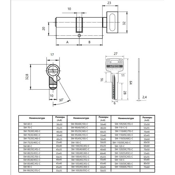 Размер цилиндра 50/60. Ключ-вертушка, вертушка с меньшей стороны.