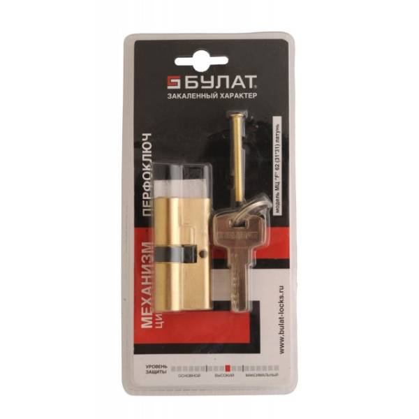 Механизм цилиндровый БУЛАТ МЦ F 62 (31х31) ключ-ключ 5 перфоключей латунь