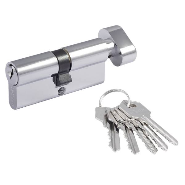 Личинка замка комплектуется пятью ключами английского типа, имеется штифт против высверливания.