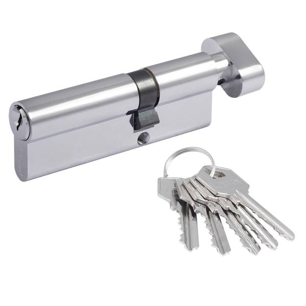 Личинка замка комплектуется пятью ключами английского типа, имеется штифт против высверливания.