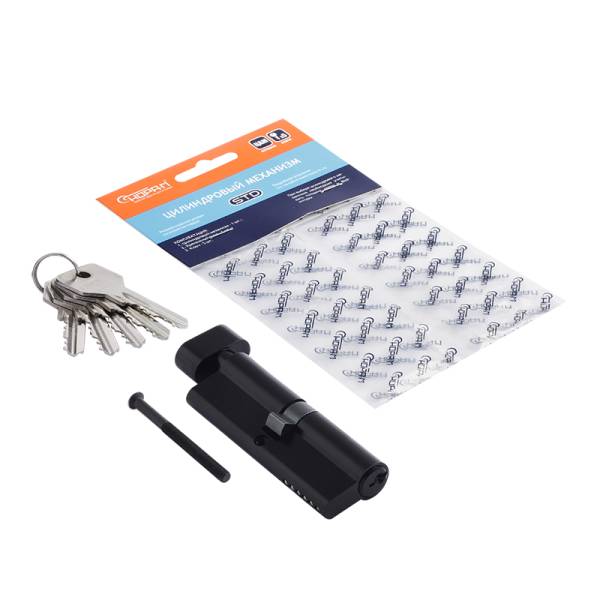 Цилиндр для межкомнатных и входных дверей. Материал ЦАМ (сплав цинка, алюминия и меди). В комплекте 5 стальных английских ключей. 5-6 пинов в зависимости от размера. Длину цилиндра подбирайте исходя из толщины двери, с небольшим запасом под накладку. Гарантия на работу цилиндра 1 год.