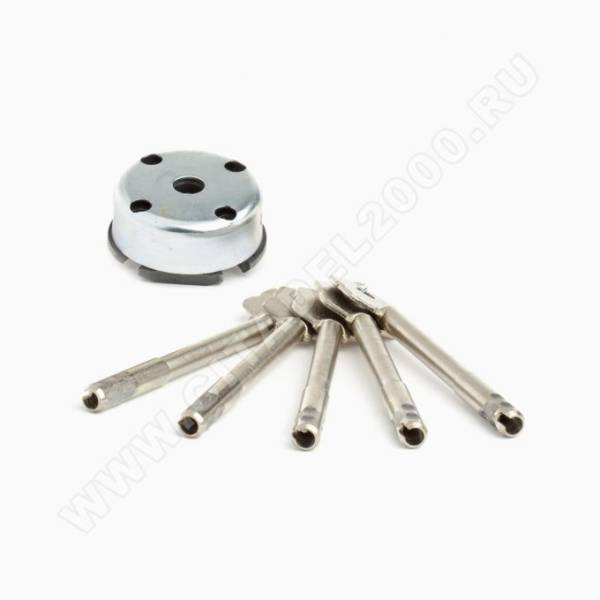 Механизм секретности для цилиндровых замков "Барьер". Механизм секретности замков моделей 2М, 3М, 2Р, 3Р, 4КР. Производитель: завод Поливектор, г. Санкт-Петербург. В комплекте 5 ключей.