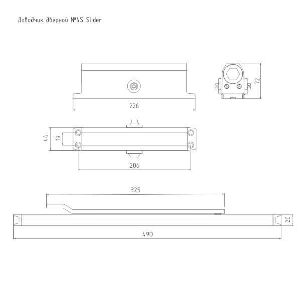 Доводчик НОРА-М №4S Slider (от 70 до 110 кг) (белый) морозостойкий со скользящей тягой