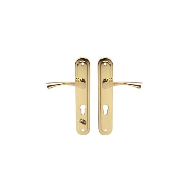 Ручки на планке для сувальдных замков с межосевым расстоянием 80 мм. Ручки дверные АПЕКС устанавливаются на правые или левые двери. Модель ручек на планке HP-80.1923-C-G-L APECS имеет следующие технические характеристики: материал ручек ЦАМ; гальваническое покрытие, цвет голд (золото). Межосевое расстояние модели HP-80.1923-C-G-L 80 мм. Способ установки ручки стяжки. Модель HP-80.1923-C-G-L имеет запирание изнутри. Модель HP-80.1923-C-G-L левая, т.е. устанавливается на двери левого открывания. Отверстие под цилиндровый механизм, следовательно, ручки устанавливаются в комплекте с цилиндровыми замками. Ручки дверные Апекс оптом и в розницу в Ростове-на-Дону: ул. Тургеневская 53/16, время работы с 8 до 17.00 без перерывов и выходных.