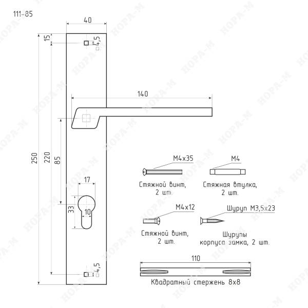 Технические характеристики: Ручки на планке для комплектации цилиндровых замков, с отверстием под цилиндровый механизм.