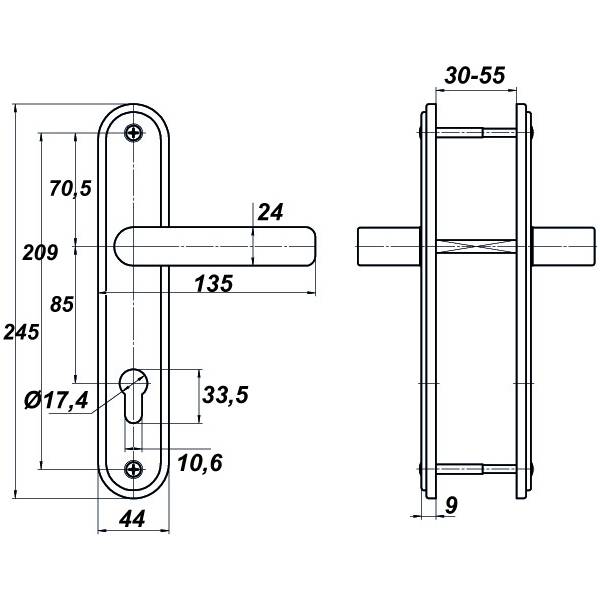 Ручки для цилиндровых замков Меттэм НР 0701 с защёлкой и межосевым расстоянием 85 мм мзготовлена из алюминиевого сплава.