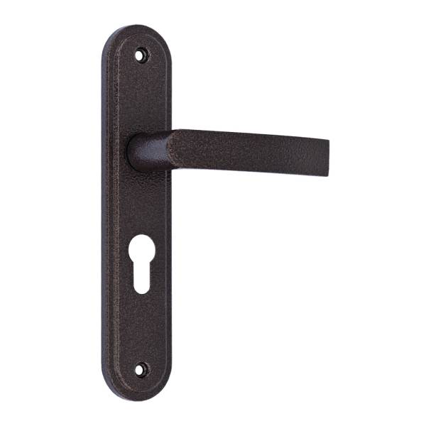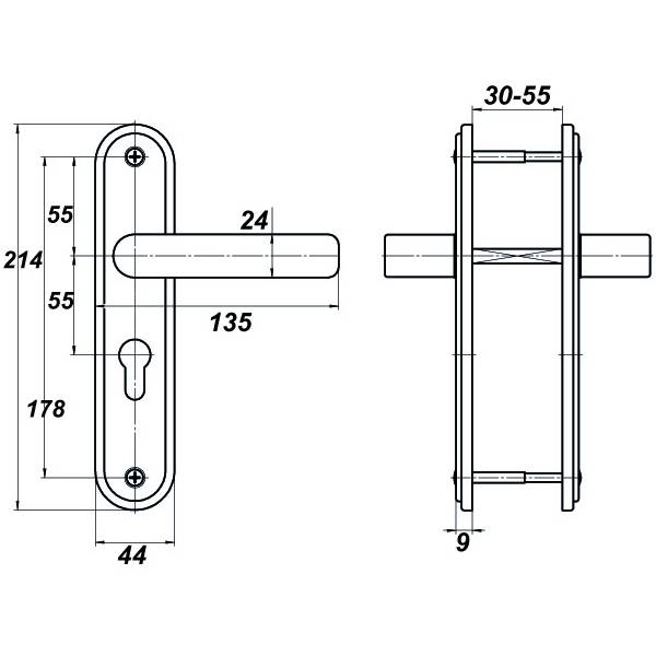 Ручки для цилиндровых замков Меттэм НР 0801 с защёлкой и межосевым расстоянием 55 мм мзготовлена из алюминиевого сплава.