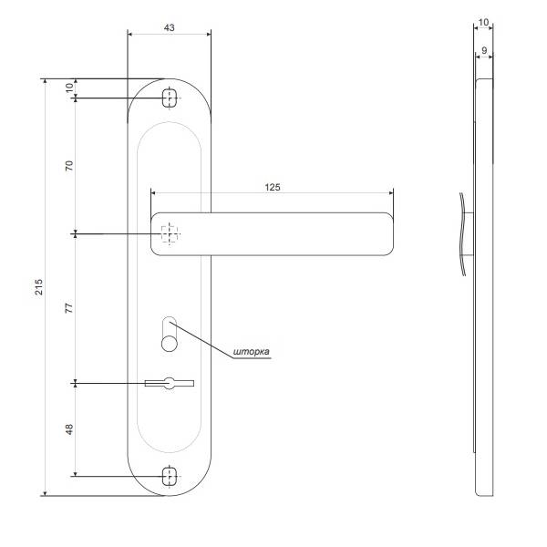 Ручка дверная имеет гальваническое покрытие, цвет данной модели хром. На планке имеется отверстие под сувальдный ключ.