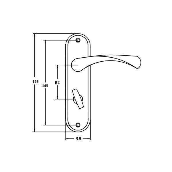 межосевое расстояние 62 мм, ширина торцевой планки 38 мм, высота планки 165 мм, расстояние между крепежными отверстиями 145 мм.