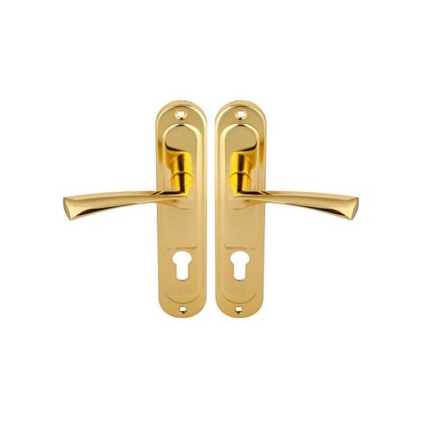 Дверные ручки на планке HP-85.1823-G с отверстием под цилиндровый механизм устанавливаются на входные металлические или деревянные двери.