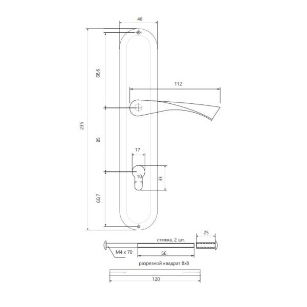 Размер сечения квадрата ручки 8 мм.
