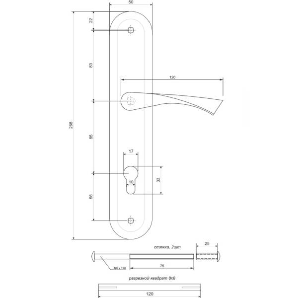 Технические характеристики модели HP-85.0423-CR: На планке имеется отверствие по цилиндровый механизм. Толщина планки 1 мм; Дополнительно ручка изнутри не имеет запирания; Межосевое расстояние 85 мм; Размер сечения квадрата ручки 8 мм; Длина квадрата 120 мм; Минимальная толщина полотна двери для установки модели HP-85.0423-CR - 50 мм; Максимальная толщина полотна двери 90 мм; Ручки устанавливаются на стяжках; Шторка на сувальдном отверстии отсутствует; Материал планки HP-85.0423-CR сталь; Материал ручки HP-85.0423-CR алюминий; Ручка имеет гальваническое покрытие, цвет покрытия хром (серебро). Ручки HP-42.0123-S-C-CR-L (комплект) упакованы в индивидуальную коробку. Гарантия от производителя 1 год при условии соблюдения правил установки и эксплуатации.