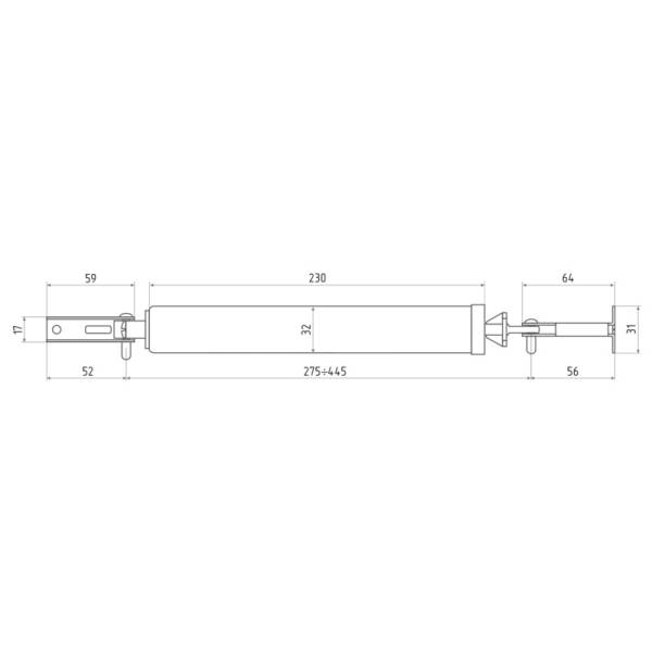 Пневматический доводчик предназначен для легких дверей весом до 35 кг.