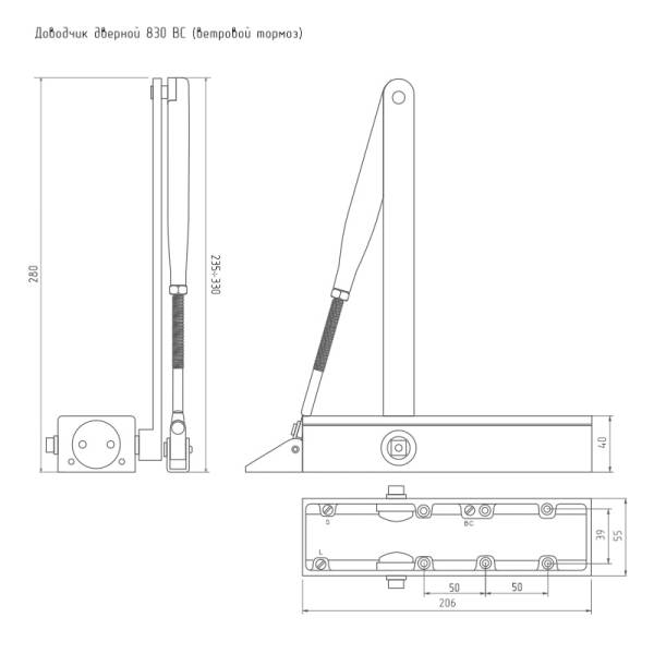 Доводчик 830 ВС с ветровым тормозом от 40 до 150 кг (графит) морозостойкий Нора-М