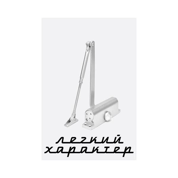 Доводчик дверной НОТЕДО серии "Легкий характер"с повышенной эффективностью работы, механо-гидравлический, двухскоростной. Цвет: белый, бронза, золото, коричневый, серебро, серый. Габариты, мм: 182 x 42 x 62. Предназначен для двери: ширина, мм: 900*; вес, кг: от 60 до 100 кг (* варьируется по графику выбора доводчика). Рабочий диапазон температур: -38°С?. +60°С. Усилие: EN2-5. Гарантия: один год при условии соблюдения правил установки, настройки и эксплуатации доводчика.