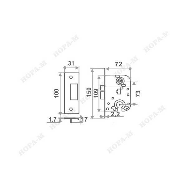 Замок врезной КЗВ 118 Нора-М с отверстием под цилиндровый механизм устанавливается на легкие межкомнатные двери финского производства.