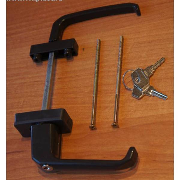 Технические характеристики дверных ручек: Ширина узкой розетки 14 мм., ширина стандартной розетки 29 мм. Ручками можно полностью закрыть металлопластиковые двери как изнутри, так и снаружи. Запирание двери фиксируется изнутри ключом, в данном случае снаружи двери открыть будет невозможно. Комплект ручек выполнен в цвете RAL 8019 (коричневый).