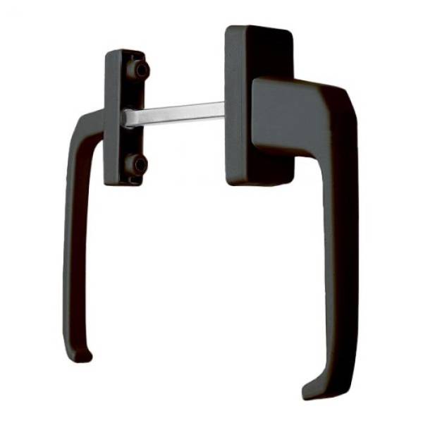 Ручки обеспечивают возможность полного закрывания металлопластиковой двери как изнутри, так и снаружи. Комплект ручек без ключа ассиметричные в коричневом цвете RAL 8019.