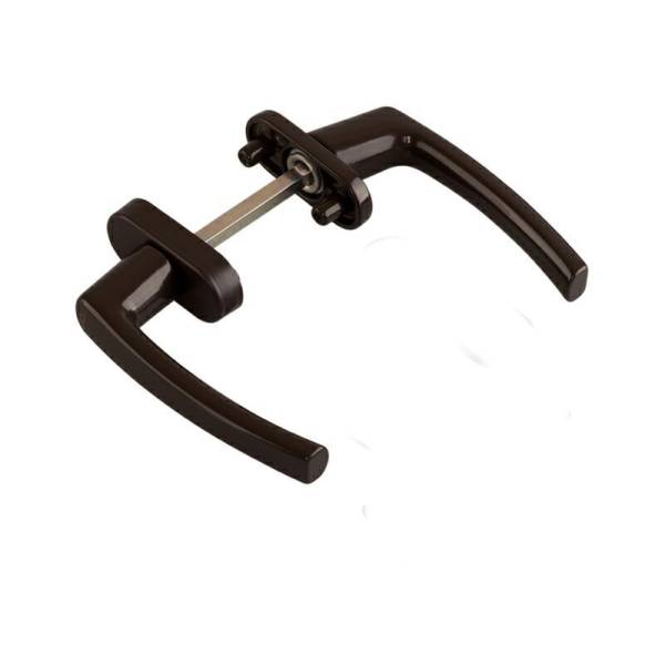 Технические характеристики дверных ручек: Ширина узкой розетки 14 мм, ширина стандартной розетки 29 мм. Узкая розетка имеет смещения относительно центра, ассиметрична. Ручки обеспечивают возможность полного закрывания металлопластиковой двери как изнутри, так и снаружи. Комплект ручек без ключа ассиметричные в коричневом цвете RAL 8019.
