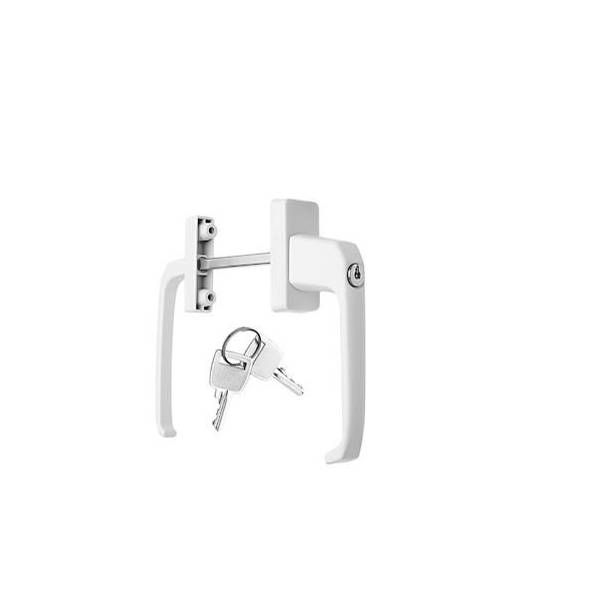 Пластиковая балконная ручка с замком белая двойная, в комплекте 2 ключа.