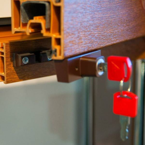 Блокирующий замок представляет собой механизм, состоящий из трёх частей: основная часть замка с цилиндрической частью и ключом; ответная часть замка; подкладка под ответную часть замка (устанавливается в зависимости от оконного профиля).