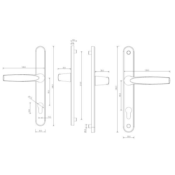 Ручки подпружиненные с 4-мя возвратными пружинами. Ширина длинной планки 30 мм. Межосевое расстояние 85 мм. Сечение профильного штифта 8 мм.