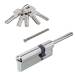 Размер цилиндра 80 мм, смещение 50х30 мм, модификация ключ-шток, длина штока 65 мм, материал цилиндра латунь, покрытие гальваническое, цвет покрытия никель, перфорированный (лазерный) ключ, в комплекте 5 ключей.