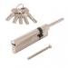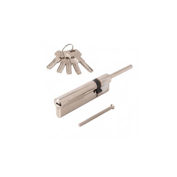 Размер цилиндра 110 мм, смещение 80х30 мм, модификация ключ-шток, длина штока 65 мм, материал цилиндра латунь, покрытие гальваническое, цвет покрытия никель, перфорированный (лазерный) ключ, в комплекте 5 ключей.