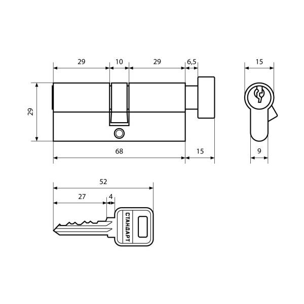 Mеханизм цилиндровый Стандарт мини 70 мм для замков 103/50В и 132/50В ключ-вертушка золото.