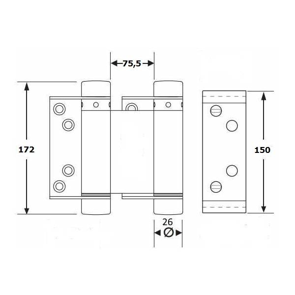 Петля для маятниковых дверей 150 мм с возможностью регулировки усилия пружины и скорости закрывания двери.