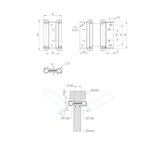Петля пружинная накладная Armadillo DAS SS 201-4" двухстороннего действия предназначена для установки на внутренние двери с принудительным закрыванием.
