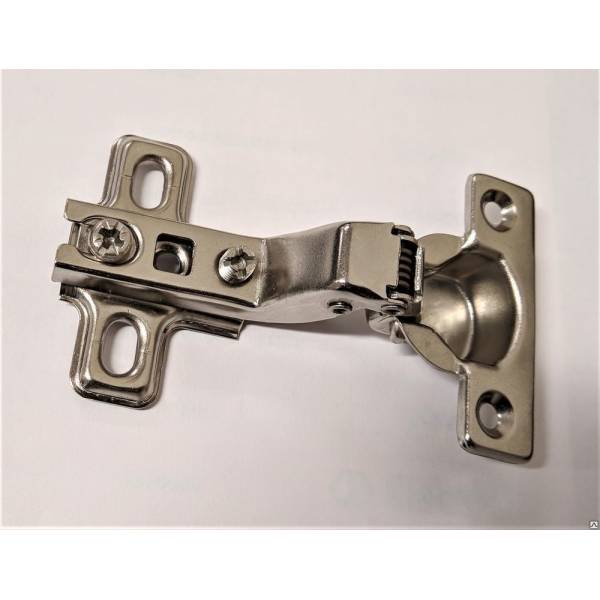 Петля накладная для дверей 15-32 мм диаметр 35 под саморезы никель, применяется для открывания мебельных фасадов толщиной от 15 до 32 мм в случае, когда фасад накладывается на боковину корпуса. Угол открывания 165 градусов.