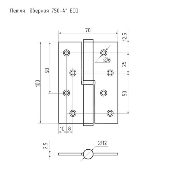 Размеры накладной петли 750-4": высота петли 100 мм , ширина петли 70 мм, толщина 2,5 мм.