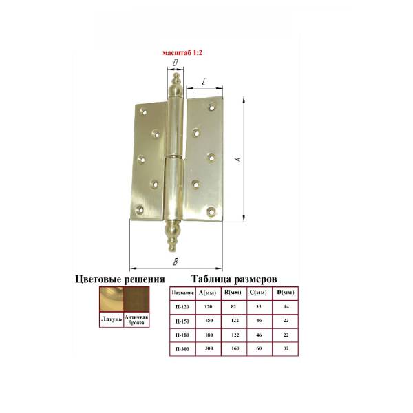 Петли стальные с латунным покрытием для тяжелых парадных (деревянных или металлических) дверей. Петля дверная усиленная с упорным подшипником. Материал изготовления сталь, имеет покрытие - лист латуни. Сторона установки дверной петли - двери левого открывания. Размеры дверной петли: 120 мм. Цвет покрытия - золото. Страна производства: Россия, отечественный производитель "Латунина". Петли парадные латунные выпускаются только под заказ. Срок производства от 1 до 2х недель. Дополнительно к петлям можно приобрести ручки латунные для массивных деревянных дверей, ригели латунные. Ручки, петли и другая фурнитура "Латунина" устанавливаются на тяжелые двери до 300 кг. Фурнитура "Латунина" установлена на парадных дверях административных зданий, Администрации города и области, министерств Ростова-на-Дону.
