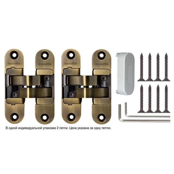 Технические характеристики: скрытая петля; 3D регулировка; материал цинковый сплав; Максимальная нагрузка (2 петли) 40 кг, Максимальная нагрузка (3 петли) 60 кг. Гальваническое покрытие, цвет покрытия бронза.
