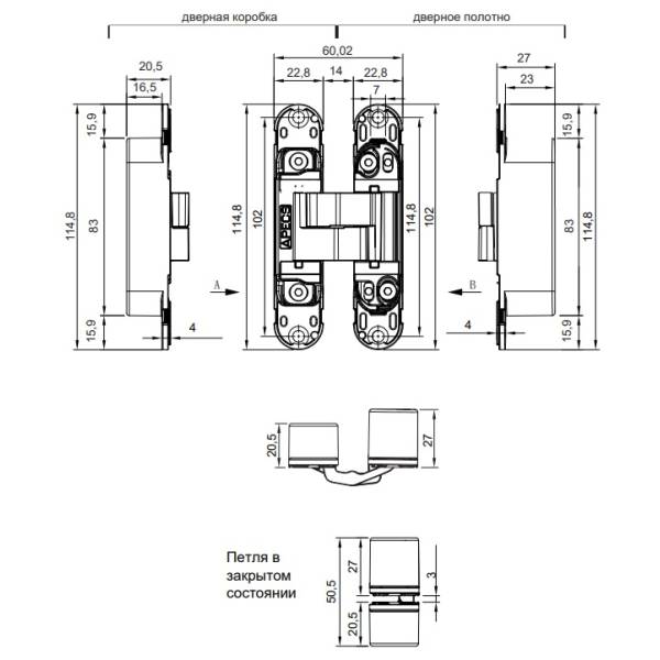 Универсальная петля скрытой установки для левых и правых дверей, с уменьшенной толщиной до 20,5 мм в коробку.