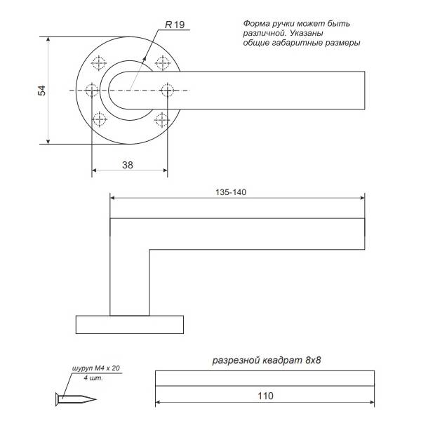 Форма ручки может быть различной, указаны лишь габаритные размеры.