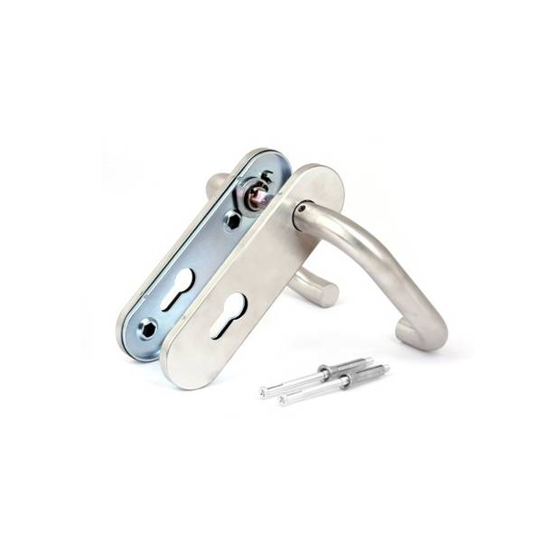 Ручки устанавливаются на усиленные глухие стяжные винты, демонтировать их с внешней стороны двери и получить доступ к замку невозможно.